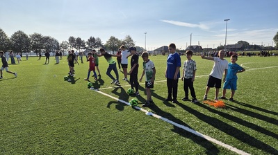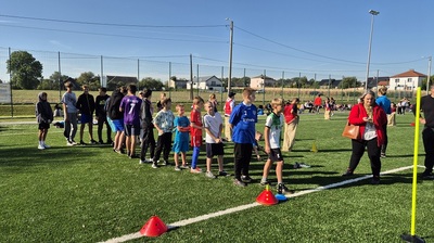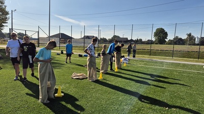 Na boisku sportowym w Kornowacu odbyło się dzisiaj szkolne święto sportowe. Na boisko przybyli uczniowie klas starszych z wszystkich szkół naszej gminy, gdzie brali udział w sportowych konkurencjach takich jak: skoki w workach, tor przeszkód, rzuty do celu, strzały do bramki. Oprócz prób sprawnościowych organizowana była również gra w zbijaka w kole. Zwieńczeniem dnia były mecze piłki nożnej z podziałem na kategorie wiekowe. Każdy uczestnik miał zapewniony poczęstunek, wodę i dobrą zabawę.