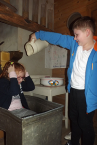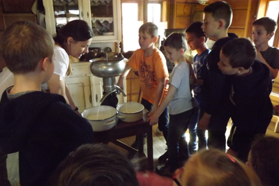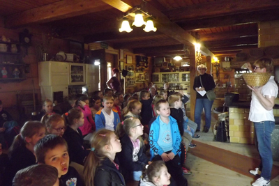 Wyjątkowy zapach i smak pieczonego chleba przyciąga wielu turystów do Chlebowej Chaty, którzy często wracają tu, by poznać życie dawne, nie tylko od strony piekarza, ale i innych zawodów i prac domowych, jakie wtedy każdy samodzielnie w domu i w jego obejściu wykonywał. A praca trwała od świtu do zmierzchu. Tutaj można docenić jej trud. Ciężką pracę ludzi dawnej wsi dzieci mogły poznać, wchodząc do stodoły, gdzie Gospodyni opowiadała i prezentowała najróżniejsze sprzęty, narzędzia i maszyny związane z dawnym życiem na wsi. Wielką atrakcją były próby młócenia cepami i mielenia żarnami. Dalsza część wycieczki odbywała się wewnątrz chaty, gdzie uczniowie poznali wygląd i wyposażenie dawnej kuchni, uczestniczyli w domowym wyrobie masła i twarogu. Następnie dzieci z przygotowanego przez gospodynię ciasta formowały małe placuszki – podpłomyki, które piekły w piecu i ciepłe degustowały z masłem, miodem lub przepysznym smalcem popijając kawą zbożowa z mlekiem.
