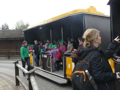 Przekraczając bramę parku, uczestnicy odbyli niezwykłą podróż w czasie i w przestrzeni. Zobaczyli odkryte przez polskich naukowców cmentarzyska kopalnych zwierząt sprzed prawie dwustu trzydziestu milionów lat. Zwiedzanie rozpoczęli od Tunelu Czasu- kina o długości aż trzystu metrów. Jadąc specjalną kolejką- uczestniczyli w spektaklu popularno-naukowym, poznali historię materii od powstania Wszechświata, sięgając trzynaście miliardów i siedemset milionów lat wstecz, aż do momentu, w którym skały zamknęły w sobie szczątki prehistorycznych zwierząt żyjących w Krasiejowie. Uczestnicy zobaczyli także terenową wystawę tropów kręgowców. Po wyjechaniu z Tunelu Czasu rozpoczęli zwiedzanie parku plenerowego oraz pawilonu paleontologicznego. Mogli zobaczyć rekonstrukcje zwierząt żyjących miliony lat temu w Krasiejowie, które uzupełniono modelami około 250 zwierząt z innych regionów Polski i Świata. Stanowisko naukowe w Krasiejowie to jedno z niewielu miejsc na świecie gdzie zachowały się szczątki tych zwierząt. Uczestnicy zwiedzili także Oceanarium Prehistoryczne 3D i Kino 5D, gdzie przenieśli się do podwodnego świata. Wielką atrakcją dla wszystkich był udział w warsztatach paleontologicznych, gdzie każdy mógł zamienić się w paleontologa i odkryć z gipsowego bloku „szkielet” dinozaura. Podczas wizyty w Parku Ewolucji uczniowie uczestniczyli w zabawie z udziałem wirtualnej rzeczywistości. W specjalnych hełmach kosmicznych dowiedzieli się wszystkiego na temat ewolucji człowieka -jak staliśmy się ludźmi, poznali pracę preparatora, odbyli swój pierwszy lot w Kosmos w promie kosmicznym na wystawę 'okna prehistorii'. Spotkali się także z najstarszą na świecie ludzką mumią „Człowiek z lodowca” – Oetzi . Był także czas na zjedzenie obiadu oraz wspólną zabawę na placu zabaw. Wszyscy uczestnicy otrzymali także promujace projekt plecaczki, koszulki i czapki.