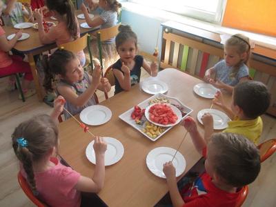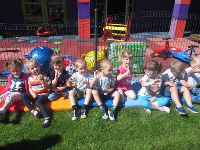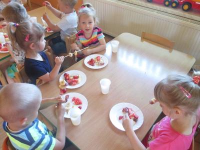 1 czerwca w Naszym Przedszkolu obchodziliśmy Światowy Dzień Dziecka, z tej okazji już od rana trwała zabawa przy muzyce. Po śniadaniu dzieci smacznie i zdrowo zjadły samodzielnie przygotowane szaszłyki owocowe,aby nabrać sił i energii do zawodów i zabaw sportowych, które odbyły się na świeżym powietrzu. Dzieci miały okazję skakać w workach, było przeciąganie liny, skoki na piłkach, przechodzenie w tunelu, malowanie kredą. Dzieci miały okazję zobaczenia pokazów Straży Pożarnej. Dzieci jako poczęstunek otrzymały lody oraz wafelki.