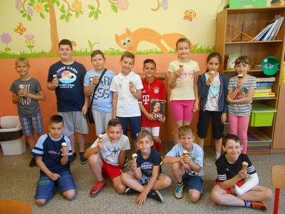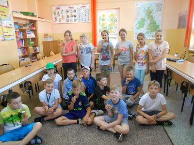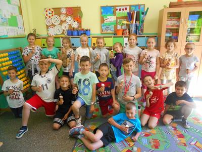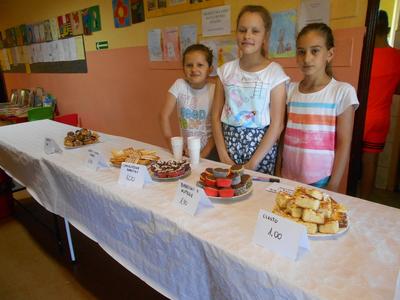 W szkole była też dziś kawiarenka zorganizowana przez klasę V, więc można było kupić sobie różne pyszne rzeczy. Odbyła się też akcja charytatywna: uczniowie przynieśli z domu niepotrzebne już książki, które można było kupić za 1 zł. Pieniądze zebrane w tej akcji zostaną przeznaczone na misje. Rada Rodziców przygotowała dla każdego ucznia słodki poczęstunek – dziękujemy! Na zakończenie każda klasa otrzymała zestaw upominków (skakanki, paletki do badmintona, rzutki, rakietki do tenisa stołowego), które zostały zakupione przez samorząd uczniowski z pieniędzy wypracowanych w kawiarenkach szkolnych.