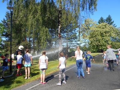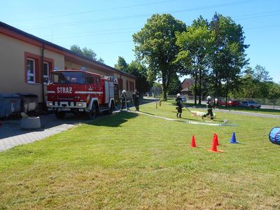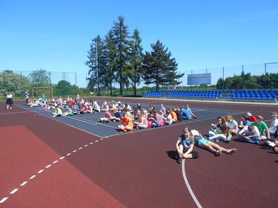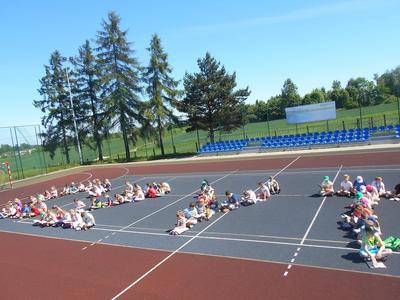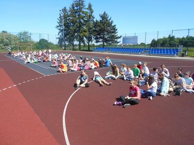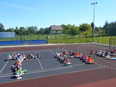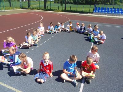 Dziś świętowaliśmy Dzień Dziecka. Tradycyjnie jest to również dzień sportu w naszej szkole. Rano na apelu Pani Dyrektor złożyła wszystkim życzenia, potem odwiedzili nas strażacy z Ochotniczej Straży Pożarnej w Pogrzebieniu i przeprowadzili próbną ewakuację. Uczniowie mogli również zobaczyć sprzęt strażacki a niektórzy schłodzili się wodą prosto z węża strażackiegoJ. Potem wszyscy uczniowie wzięli udział w ogólnopolskiej akcji „Jak nie czytam, jak czytam”. Akcja ta ma na celu pobicie rekordu w czytaniu książek jak największej ilości osób w tym samym momencie. Następnie uczniowie wzięli udział w rozgrywkach sportowych w ramach akcji „Trzymaj formę, bądź aktywny”: grach zespołowych, torze przeszkód. Uczniowie klas IV –VI wyszli do lasu, tam szukali ukrytych szarf i wykonywali różne zadania.