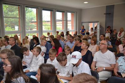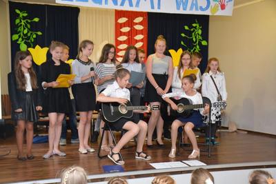 23 czerwca 2017 r. zabrzmiał ostatni dzwonek roku szkolnego 2016/2017. Uroczystość rozpoczęła się mszą św. w kościele p.w. św. Bartłomieja w Pogrzebieniu, po czym przedszkolaki i uczniowie udali się do swoich placówek. Najpierw Pani Dyrektor Joanna Krasek podsumowała miniony rok szkolny w przedszkolu, a następnie w szkole. Tradycyjnie rozpoczęto od odśpiewania hymnu państwowego. Następnie z rąk Pani Dyrektor i wychowawców najlepsi uczniowie za sukcesy w nauce i zachowaniu odebrali świadectwa z wyróżnieniem oraz nagrody książkowe. Pani Dyrektor podziękowała wszystkim za pracę i zaangażowanie. Szczególne słowa wdzięczności skierowała do rodziców, którzy bardzo aktywnie wspierają działania szkoły. W dalszej kolejności uczniowie klasy piątej w programie artystycznym pożegnali starszych kolegów, śpiewając dla nich piosenkę o każdym absolwencie. Każdy szóstoklasista otrzymał także od piątoklasistów medal. Potem absolwenci klasy szóstej zaprezentowali ciekawy montaż słowno- muzyczny, podczas którego podziękowali nauczycielom i pracownikom szkoły za opiekę i edukację, a także rodzicom za wsparcie i miłość. Na zakończenie Pani Dyrektor życzyła wszystkim udanych, słonecznych, a przede wszystkim bezpiecznych wakacji.