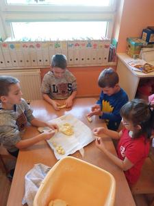 Dzieci z przedszkola zaprosiły swoich starszych kolegów z klasy I i wspólnie zrobiły śląskie kluski .Po ugotowaniu klusek dzieci ze smakiem przystąpiły do degustacji. Wszystkim bardzo smakowało, większość prosiła o dokładkę.