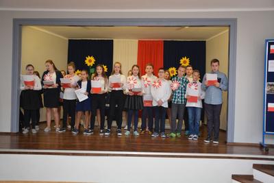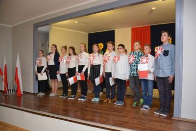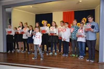 9.listopada w naszej szkole odbyła się uroczysta akademia z okazji 99. rocznicy odzyskania Niepodległości przez Polskę. Z tej okazji Uczniowie wraz z Nauczycialami przygotowali teksty i piosenki upamiętniające to święto. Dzieci opowiadały o postaciach zasłużonych dla naszej Ojczyzny, przypomniały wydarzenia, które wpłynęły na to, że żyjemy w wolnym kraju. Pojawiały się również utwory głoszące zasługi żółnierzy, ich przywódców, opisujące poświęcenie walczących i radość z bycia Polką i Polakiem. Na koniec Nauczyciele przypomnieli Dzieciom o wywieszeniu flagi w swoim domu i szacunku do symboli narodowych.