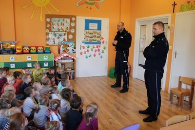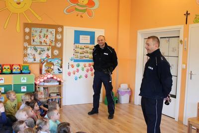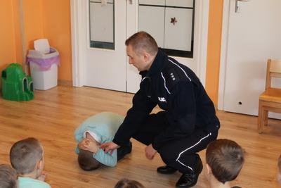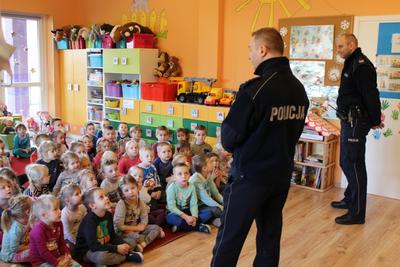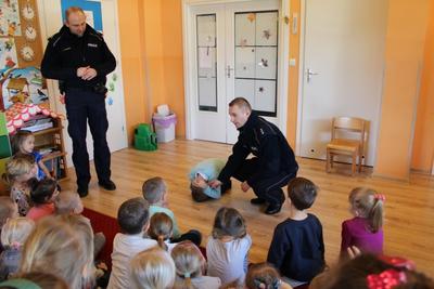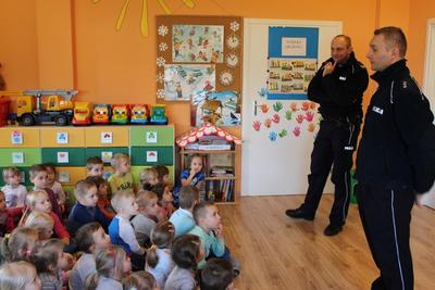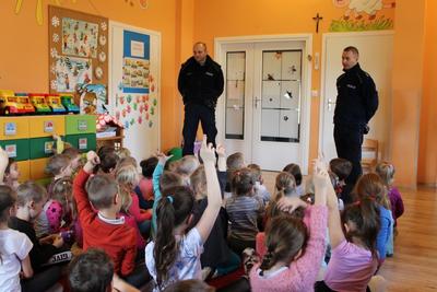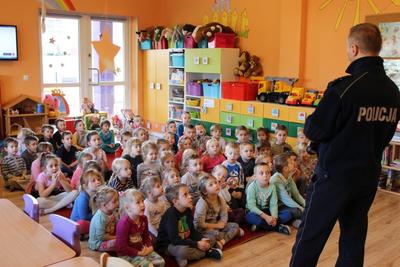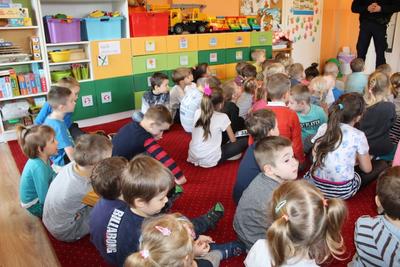 W dniu 25.01.2018r do naszego Przedszkola w Pogrzebieniu zostali zaproszeni przedstawiciele Policji z Raciborza. Pan policjant przeprowadził pogadankę z dziećmi pod hasłem „Bezpieczne ferie zimowe”. Podczas spotkania przedszkolaki dowiedziały się jak bezpiecznie zachować się w domu i w przedszkolu oraz poza domem w czasie ferii zimowych. Pan Policjant przypomniał dzieciom; - jak prawidłowo przechodzić przez jezdnię oraz o konieczności noszenia przez dzieci odblasków, - po co są foteliki w samochodach, dlaczego dzieci muszą w nich jeździć, - jak się zachować i jaką przyjąć pozycję, gdy napotkają na swej drodze obcego psa, - komu i kiedy możemy otwierać drzwi, Okres przed feriami zimowymi to czas, kiedy policjanci ostrzegają dzieci przed zagrożeniami z jakimi mogą się spotkać podczas zimowego wypoczynku. W trakcie ferii pogoda sprzyja zabawom na śniegu i lodzie, dlatego policjant rozmawiając z dziećmi ostrzegał najmłodszych, aby nie wchodzili na zamarzniętą taflę stawu, rzeki czy jeziora uświadamiając konsekwencje takich zabaw. Policjanci przestrzegali dzieci, aby nie zjeżdżały ze stromych górek czy skarp usytuowanych w pobliżu tras komunikacyjnych. Ponadto ukazując konsekwencje rozmawiał z najmłodszymi, aby nie nacierali się śniegiem, nie rzucali twardymi śnieżkami w siebie oraz na jadące pojazdy. Bezpieczeństwo dzieci na drodze nie tylko podczas ferii, ale na co dzień jest bardzo ważnym zagadnieniem, dlatego też na każdym kroku warto przypomnieć o podstawowych zasadach poruszania się pieszych po drogach, pouczał pan policjant. Dlatego też warto zaopatrzyć się w elementy odblaskowe. Podczas spotkania dzieci utrwaliły zasady ruchu drogowego oraz zasady bezpiecznego przebywania na terenie przedszkola i placu zabaw oraz innych miejscach publicznych. Przedstawiciele Policji każdego roku odwiedzają nasze przedszkole, dzieci aktywnie brały udział w spotkaniu oraz chętnie odpowiadały na pytania,a spotkania przebiegają zawsze w miłej atmosferze.
