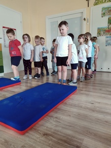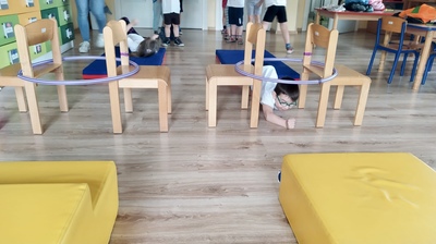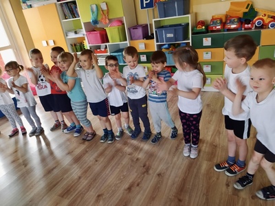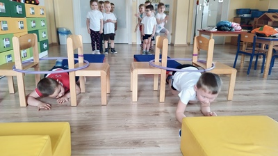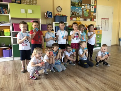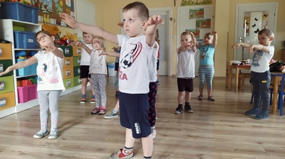 Bez wątpienia maluszki ze słonecznej krainy to bardzo energiczna grupa! Najmłodsze przedszkolaki kochają zabawy ruchowe, tańce, gimnastykę, czy wizyty na podwórku, gdzie mogą pobawić się, np.: w berka. Pisząc krótko – maluszki kochają aktywność fizyczną! Niedawno, w naszej najmłodszej grupie, odbyły się zajęcia inne niż dotychczas, gdyż zostały zorganizowane małe zawody sportowe. Cała grupa maluchów została podzielona na dwie drużyny, które rywalizowały między sobą, ucząc się tym samym współzawodnictwa oraz współpracy.