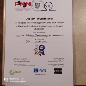 Oskar Żuchowicz laureatem Wojewódzkiego Konkursu z j. niemieckiego - „Spielfabrik”