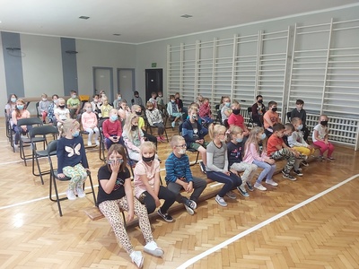 Uczniowie mieli okazję porozmawiać o zachowaniu bezpieczeństwa w drodze do i ze szkoły, o bezpiecznym przechodzeniu przez ulicę, prawidłowym zachowaniu się na przejściach dla pieszych oraz bezpiecznym zachowaniu się w oczekiwaniu na autobus szkolny, jak również o ostrożności podczas wsiadania i wysiadania z autobusu. Dzieci odpowiadały na zadawane pytania, wykazały się wiedzą z zakresu bezpieczeństwa w ruchu drogowym, podawały liczne przykłady niewłaściwego zachowania się.