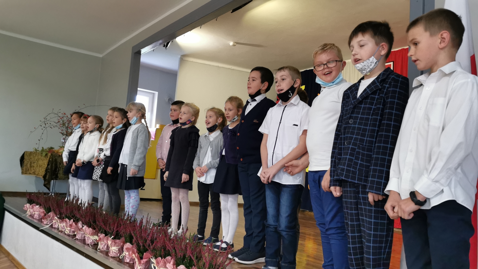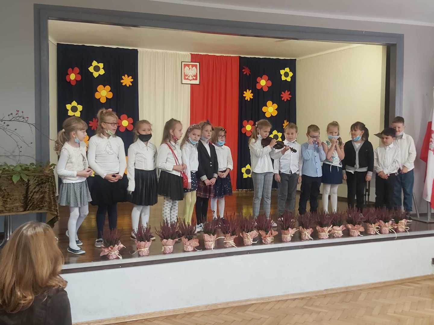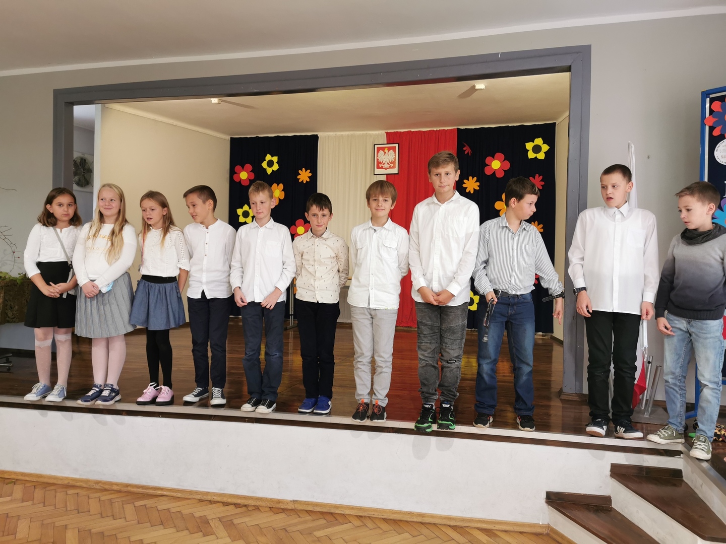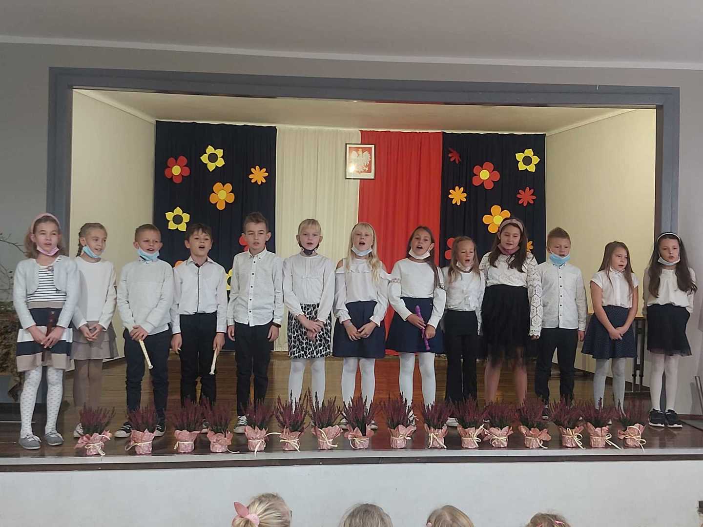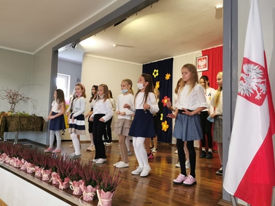 Uczniowie każdej klasy wystąpili w programie artystycznym, były piosenki, wiersze, tańce i gra na instrumentach. Po wielu miesiącach pandemii mogliśmy podziwiać naszych utalentowanych uczniów na scenie.