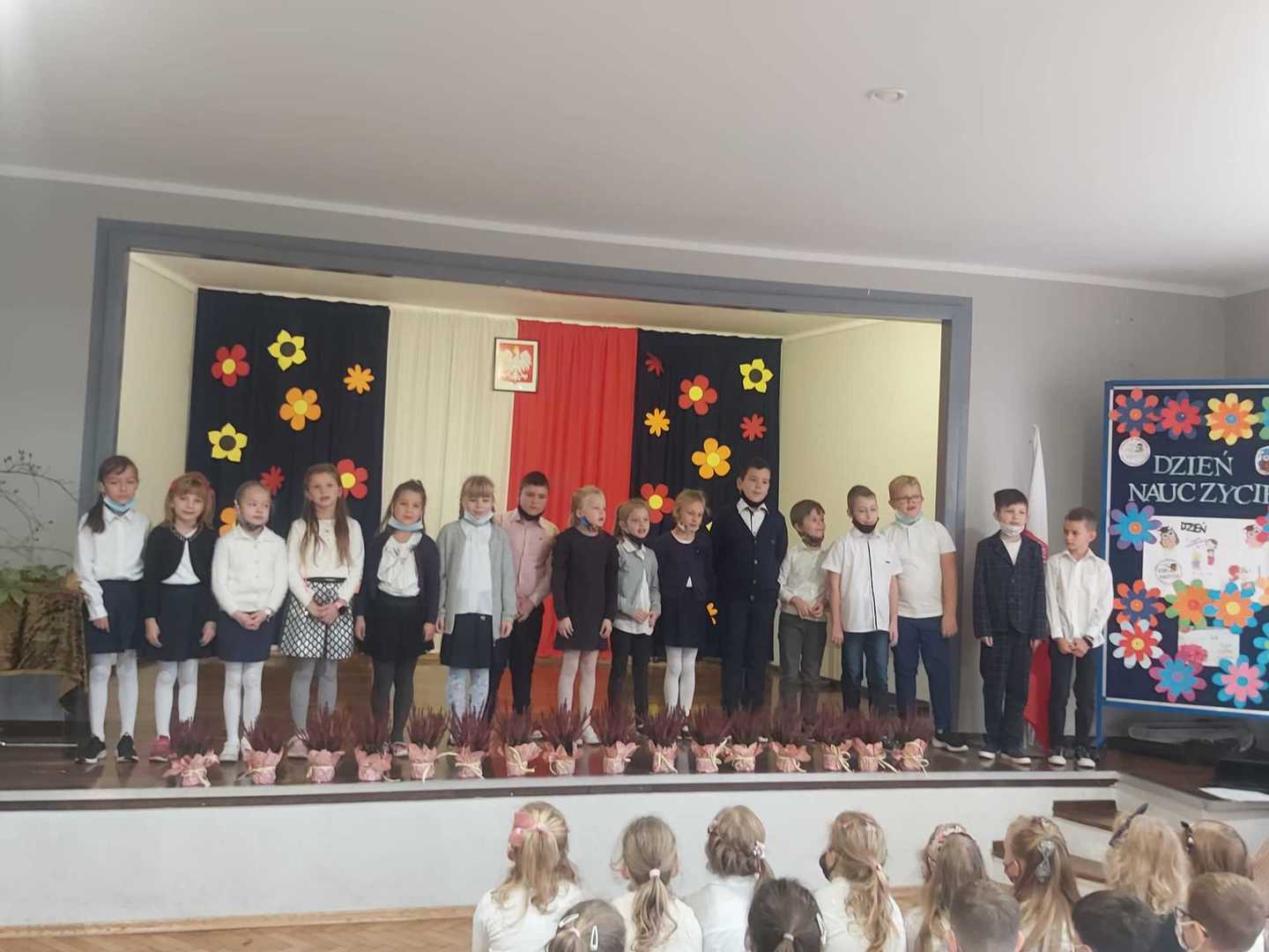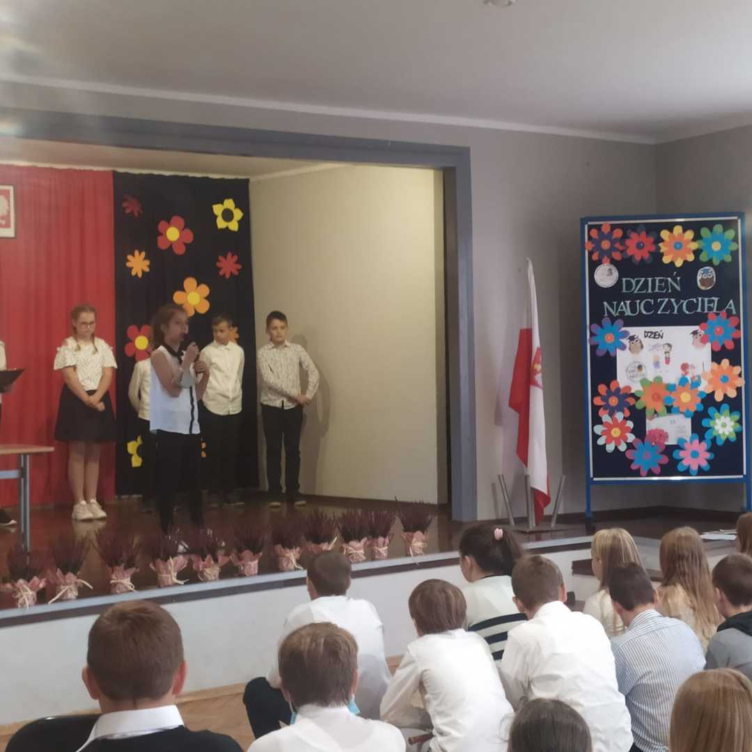 Dziś w naszej szkole świętowaliśmy Dzień Edukacji Narodowej, potocznie zwany Dniem Nauczyciela. Z tej okazji cała społeczność szkoły wzięła udział w akademii, podzielonej na dwie grupy ze względów pandemicznych.