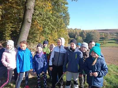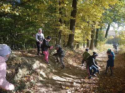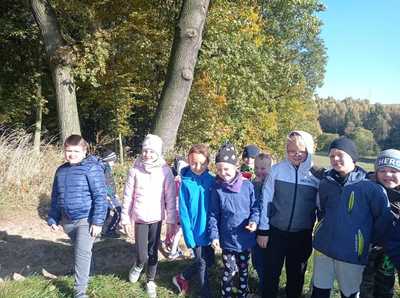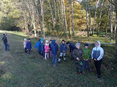 W ramach rozwijania wiedzy przyrodniczej kl.II wybrała się na wycieczkę do pobliskiego lasu. Przed wyjściem odbyła się rozmowa na temat właściwego zachowania w lesie. W czasie pobytu staraliśmy się rozpoznać wybrane drzewa i krzewy, nazywać ich owoce.