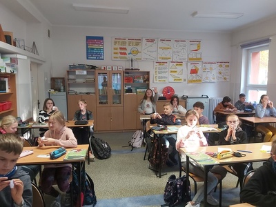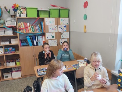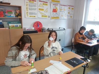 W czasie lekcji matematyki uczniowie składali swoje pierwsze modele