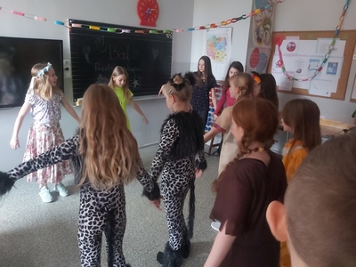 W piątek 4 lutego 2022r. uczniowie klasy 3 bawili się na balu przebierańców. Wszystkie stroje były piękne i wyjątkowe, a uczestnicy z wielką ochotą i zaangażowaniem uczestniczyli w tańcach i zabawach. 😀