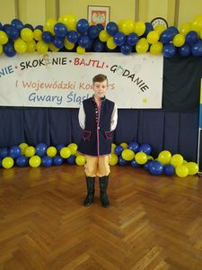 Naszą szkołę reprezentował bardzo utalentowany uczeń klasy V - Dominik Gembalczyk, który zdobył wyróżnienie I stopnia. W prezentowanym utworze przypomniał śląską tradycję chodzenia z weselnym kołoczem. Spośród wielu wykonawców wyróżnił się piękną gwarą, dykcją, modulacją głosu i wrażeniem artystycznym. Zespół Szkolno - Przedszkolny w Pogrzebieniu pielęgnuje śląskie tradycje i gwarę, dlatego chętnie uczestniczy w takich wydarzeniach.