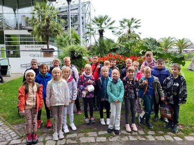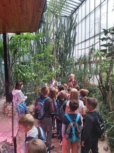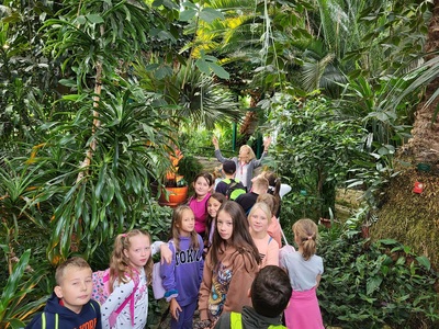 Dnia 20.09.2022r. uczniowie klas I - IV pojechali na wycieczkę do Gliwic. Pierwszym punktem wycieczki było zwiedzanie palmiarni, w której rośnie ponad 5600 roślin a najstarsze okazy mają nawet ponad 100 lat. Uczniowie zwiedzili cztery pawilony tematyczne, gdzie podziwiali m.in.: rośliny tropikalne, paprocie, sagowce, palmy, drzewo kiełbasiane oraz wiele gatunków kaktusów. W pawilonie roślin użytkowych zostały omówione gatunki takie jak bananowce, oliwki, wanilia, kawa, granat czy kauczukowiec. Następnie podziwialiśmy cztery ogromne akwaria, w których odtworzone zostały ekosystemy Amazonki, jeziora Tanganika, rzeki azjatyckiej i polskiej.