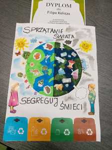 We wrześniu, już tradycyjnie, odbył się konkurs plastyczny związany z akcją sprzątania świata. Był on przeznaczony dla klas I-III oraz IV-VI. Najwięcej prac było z klas młodszych, a szczególnie z kl. I. Nagrodami w tym konkursie były gry, zakupione z bonu, który szkoła otrzymała w tamtym roku w konkursie ogólnopolskim na zbiórkę zużytych baterii. Wyniki były następujące: