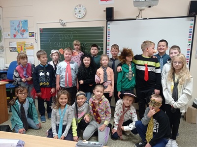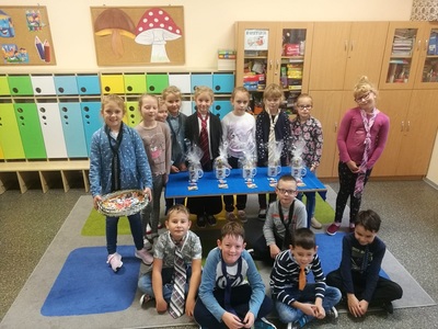 Samorząd szkolny przygotował zabawy i zagadki oraz słodki poczęstunek za przybycie do szkoły w krawacie:)