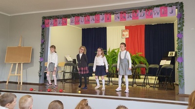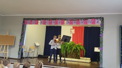 Program artystyczny obfitował w liczne piosenki, wiersze okolicznościowe, cudowną grę na skrzypcach. Nie zabrakło też akcentu tanecznego oraz wokalnego w wykonaniu naszych utalentowanych uczniów.