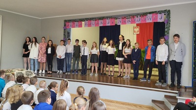 W dalszej części programu wystąpiły klasy 1- 6. Uczniowie bardzo bogatym programem artystycznym podziękowali Dyrekcji, przedstawicielom Rady Rodziców, wychowawcom, nauczycielom oraz pracownikom niepedagogicznym za trud włożony w wychowanie oraz oddanie i poświęcenie na rzecz oświaty.