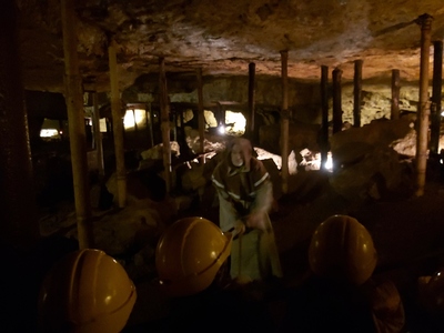 Następnym punktem wycieczki była Sztolnia Czarnego Pstrąga, do której schodziliśmy krętymi schodami na głębokość 30 metrów, gdzie odbywał się przepływ łodziami na trasie o długości 600 metrów.W czasie przepływu przewodnik snuł opowieści o dawnym górnictwie.