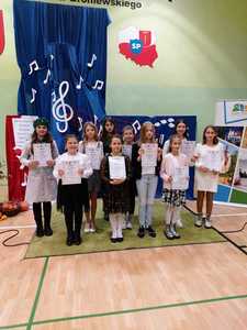Uczennica klasy VI Emilia Franica 15 listopada brała udział w Powiatowym Festiwalu Piosenki Turystycznej, Harcerskiej i Patriotycznej w Krzanowicach. Tam zaśpiewała utwór z repertuaru Maryli Rodowicz „Tango na głos, orkiestrę i jeszcze jeden głos”. Konkursowy utwór zaprezentowała uczniom naszej szkoły na Poranku Dnia Niepodległości. Trwający 5 minut utwór zachwycił publiczność i komisję konkursową. Emilia zdobyła ex aequo I miejsce w III Powiatowym Festiwalu Piosenki Turystycznej, Harcerskiej i Patriotycznej. Gratulujemy !!!