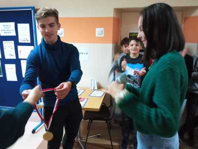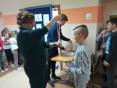 Listopad w naszej szkole stał pod znakiem szkonych turniejów sportowych. 18 listopada odbył się turniej szachowy w którym triumfował Jan Helis, drugie miejsce zajął jego brat Wojciech. Partię o trzecie miejsce rozstrzygnął czas, którego brakło Hannie Knurze, żeby zamatować przeciwnika. Więc trzecie miejsce zajął Maksymilian Niestrój, a czwarte Hanna Knura. Hania została wyróżniona jako najlepsza szachistka w kategorii dziewczyn. Warto wspomnieć, że najlepsza czwórka szachistów naszej szkoły już wcześniej reprezentowała szkołę w finałach rejonowych zajmując wysokie trzecie miejsce.