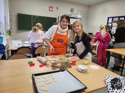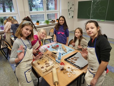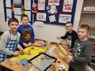 Oprócz programu artystycznego przygotowujemy w szkole ozdoby świąteczne, ciasteczka i pierniki oraz inne dekoracje związane z okresem bożonarodzeniowym, które będzie można wystawić na szkolnym stoisku. Do przygotowania pysznych wypieków posłużył nam sprzęt zakupiony w ramach program MEiN "Laboratoria Przyszłości"