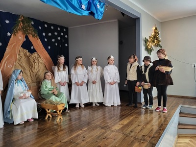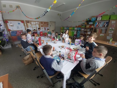 Dziś w naszej szkole już od rana panował świąteczny nastrój. Uczniowie odświetnie ubrani przygotowywali w klasach wigilijny stój i poczęstunek. Było wspólne kolędowanie, życzenia, opłatek i prezenty pod choinką. Klasa II z siostrą Danutą i panią Jureczko przygotowała piękne jasełka, które będzie można również zobaczyć w kościele parafialnym w Pogrzebieniu. Serdecznie wszystkich zapraszamy!