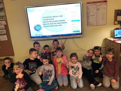 Przedszkolaki poznały bohaterów: Rąsia Radek, Mydełko Monia, Wirus Wincent, Chusteczka Hania, Kropelka Krzyś. Dzięki nim poznały jak zapobiegać rozprzestrzenianiu się wirusów. Obejrzały również film edukacyjny o wirusach i bakteriach. Dzieci wiedzą i potrafią wyjaśnić jak ważne jest mycie rąk w zapobieganiu rozprzestrzeniania się zarazków,chusteczki higieniczne mogą wyłapać zarazki i zmniejszyć szanse na rozprzestrzenienie ich wśród przyjaciół i rodziny, jeśli zachowam zdrowie, nie będę się źle czuć i nie ominą mnie ciekawe zajęcia z przyjaciółmi w przedszkolu, szczepionka przeciw grypie może pomóc chronić dzieci.