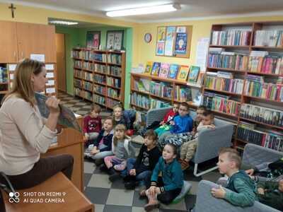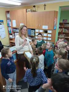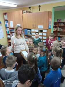 3 marca grupa przedszkolaków odwiedziła Publiczną bibliotekę w Pogrzebieniu. Głównym celem wycieczki było rozwijanie zainteresowań czytelniczych, kształtowanie umiejętności współdziałania oraz utrwalanie nawyków kulturalnego zachowania się w miejscach publicznych. Poprzez krótki spacer udaliśmy się do biblioteki, gdzie czekała na nas pani bibliotekarka, która opowiedziała nam o swojej pracy, zapoznała z zasadami zachowania w bibliotece oraz pokazała pomieszczenia z książkami . W miłej atmosferze i z zaciekawieniem mogliśmy posłuchać bajki, którą czytała nam pani bibliotekarka oraz odpowiedzieć na bajkowe zagadki i pooglądać , poczytać piękne kolorowe książki dla dzieci. W czasie spotkania poznaliśmy kampanię przeznaczoną dla dzieci - Mała Książka – Wielki Człowiek – to ogólnopolska kampania społeczna Instytutu Książki , której celem jest rozwijanie zamiłowania do czytania wśród dzieci w wieku przedszkolnym. Dzieci z zaciekawieniem słuchały opowieści pani bibliotekarki o działalności biblioteki oraz pasji jaką jest czytanie książek , bo miłość do książek jest zaproszeniem do fantastycznej przygody i prezentem na całe życie. Do przedszkola wróciliśmy zadowoleni ale przede wszystkim bogatsi o nowe doświadczenia .