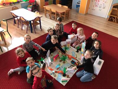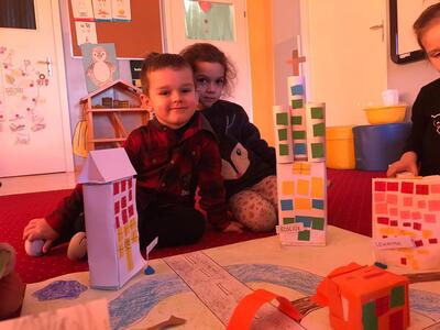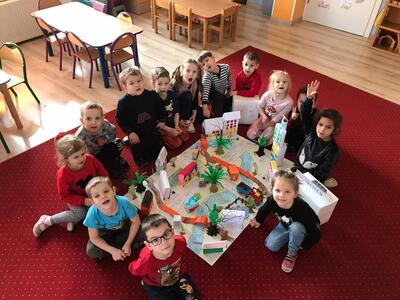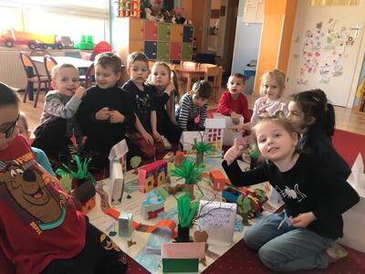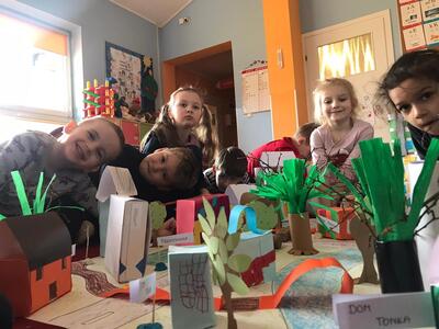 Średniaki z naszego przedszkola realizują program autorski ,, Moja mała ojczyzna'', którego głównym celem jest poznanie najbliższego środowiska. Celem realizowanych zajęć był rozwój kreatywnego myślenia i wyobraźni dzieci oraz wprowadzenie dzieci w świat architektury. Zajęcia odbywały się w swobodnej, twórczej atmosferze, a zadaniem dzieci było wykonanie makiety najbliższego otoczenia. W tak wykreowanej rzeczywistości powstały m.in.: domki z kartonów, zabytki, kościół, przedszkole, szkoła. Tego typu zajęcia uczą myślenia przestrzennego, proporcji, rozwijają wyobraźnię i wspierają manualny rozwój młodych adeptów sztuki.