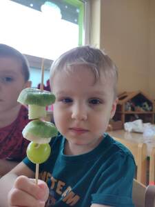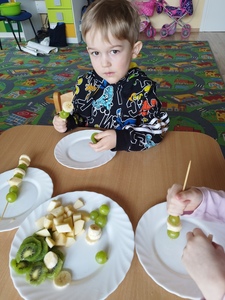 Dzisiaj w naszym przedszkolu było BARDZO OWOCOWO. Cały dzień upłynąłnam pod znakiem zdrowych, kolorowych i pysznych owoców! Dzieci oglądały, wąchały i dotykały znane i nieznane sobie owoce. A co najważniejsze uczyły się o tym, jak ważne dla zdrowia jest ich jedzenie. Każde dziecko wykonało pyszne owocowe szaszłyki, które później z chęcią zjedli. Na zajęciach nie zabrakło również ciekawych zabaw oraz ciekawych prac. Cały dzień bawiliśmy się pysznie w towarzystwie owoców, które są zdrowe i mają mnóstwo witamin. Na długo zapamiętamy tę lekcję i od dzisiaj każdy z nas zjada owoce!