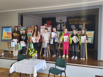 W czwartek 16 marca rozstrzygnięto konkurs plastyczny, którego organizatorem był Zespół Szkolno-Przedszkolny w Pogrzebieniu oraz sołtys wsi Pogrzebień. Celem konkursu było ukazanie piękna rodzinnej miejscowości, współpraca szkoły z lokalną społecznością, kształtowanie właściwego stosunku do swojej miejscowości i przywiązania do rodzinnych stron. Uroczystość odbyła się na sali gimnastycznej, a honorowymi gośćmi byli sołtys Pogrzebienia p. Eugeniusz Franiczek, przewodniczący rady gminy p. Marian Zimermann oraz przewodnicząca komisji oświaty p. Katarzyna Siedlaczek. Komisja konkursowa przedstawiła laureatów konkursu, którym nagrody ufundował i wręczył pan sołtys. W trakcie spotkania uczniowie mieli okazję porozmawiać z sołtysem i radnymi na temat przyszłości naszych miejscowości i planów rozwoju wsi. W niedzielę 26 marca domu kultury w Pogrzebieniu odbędzie się wystawa prac uczniów dla lokalnej społeczności.