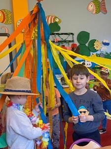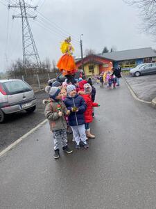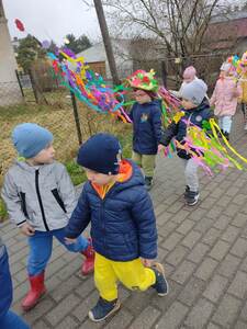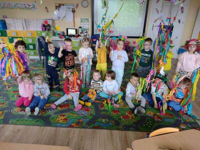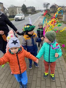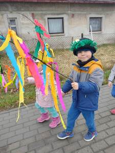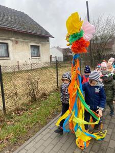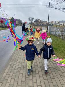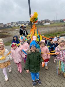 21 marca tradycyjnie, jak co roku w naszym przedszkolu obchodziliśmy Pierwszy Dzień Wiosny. „Marzanno, Marzanno Ty zimowa panno! Ciebie pożegnamy wiosnę przywitamy! - z tymi słowami wesołym, barwnym korowodem przedszkolaki przeszły dziś ulicami Pogrzebienia, by powitać Wiosnę. Dzieci już od samego rana przygotowywały się do przywitania wiosny. Uczestniczyły w zabawach nawiązujących do rozpoczynającej się nowej pory roku: słuchały wierszy o Marzannie, oglądały prezentację i słuchały piosenki o wiośnie, przymierzały kapelusze i czapki pięknie ozdobione. Nasze różnobarwne Marzanny były ekologiczne, zrobione głównie z papieru, bibuły i słomy. Aby tradycji stało się zadość, symbol zimy - Marzannę wszystkie grupy uroczyście pożegnały. Dzieci głośnym okrzykiem: „Precz zimo zła, witamy wiosnę!” próbowały wystraszyć zimę i powitać nową porę roku wiosnę. Do przedszkola wróciliśmy z symbolami wiosny: gaikiem i kolorowymi kwiatami. Od dzisiaj możemy się cieszyć urokami nowej pory roku - wiosny.