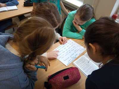 22 marca klasa IV została podzielona na trzy grupy. Każda z grup miała do wykonania zadania związane z baśnią „Nowe szaty cesarza” Andersena. Do zadań uczniów należało m.in.: układanie planu wydarzeń z rozsypanki, wybieranie właściwych morałów oraz uzupełnienie elementów świata przedstawionego w baśni.
