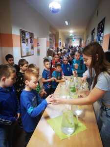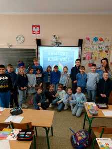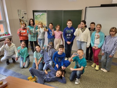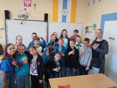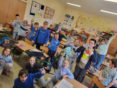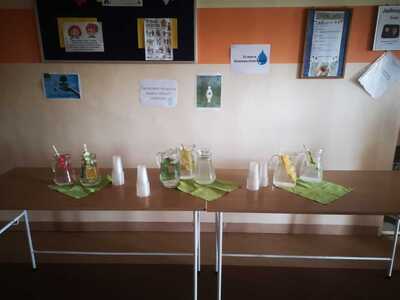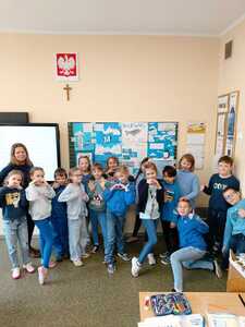 W naszej szkole dzisiaj panował kolor niebieski. Każdy miał na sobie coś w tym odcieniu. Przygotowano również gazetkę ścienną na korytarzu, a Samorząd Uczniowski częstował wodą o różnych smakach. Była ona z dodatkami: pomarańczy, ogórka, cytryny, limonki, arbuza, mięty oraz soku z brzozy.