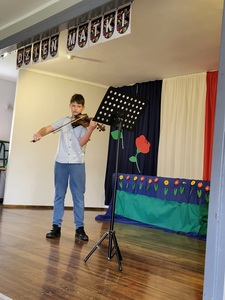 Uczniowie poszczególnych klas recytowali wiersze okolicznościowe oraz śpiewali piosenki. Nie zabrakło też tańca oraz gry na skrzypcach.