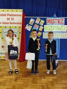 W Szkole Podstawowej nr 18 im. Książąt Raciborskich w Raciborzu 30 maja odbył się VIII Powiatowy Konkurs "Mistrz Rozrywek umysłowych" dla uczniów klas I.