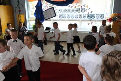 W czwartek 22 czerwca odbyło się uroczyste zakończenie roku szkolnego 2022/2023.Przedszkolne mury opuściła grupa 6- latków. Absolwenci przedszkola zaprezentowali wiersze, piosenki i pięknie wykonanego Poloneza. W imieniu Pani Dyrektor podziękowano dzieciom, wychowawcom, pracownikom oraz rodzicom i Radzie Rodziców za całoroczną współpracę. Naszym absolwentom życzymy samych sukcesów na dalszych etapach edukacyjnych oraz miłych wspomnień z naszą placówką. Rodzicom dziękujemy za pomoc, życzliwość, serdeczność, jaką okazywali w ciągu tych lat oraz za aktywny udział w życiu przedszkola. Na koniec dzieci otrzymały pamiątkowe dyplomy oraz książki.