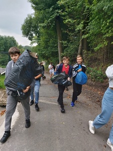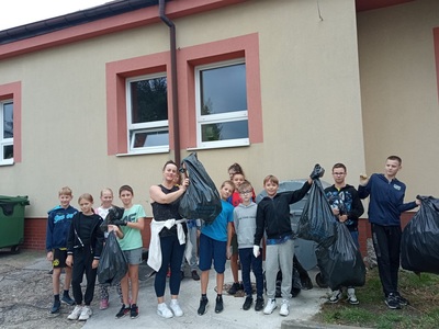 Cały rok prowadzimy wspólne działania na rzecz poszanowania środowiska. W tym roku obchodziliśmy 30 lat sprzątania świata w Polsce. Kulminacja akcji przypada w trzeci weekend września. Tematem tegorocznej edycji było „Sprzątanie świata łączy ludzi!”. Uczniowie wykonywali okolicznościowe plakaty, a w piątek 15 września każda klasa wraz z wychowawcą sprzątała przydzielony teren Pogrzebienia. Zauważa się na przestrzeni lat, że śmieci jest mniej jednak najwięcej w nazbieranych w workach było szkła. W podziękowaniu za posprzątanie okolicy dzieci otrzymały wafelki z Urzędu Gminy.