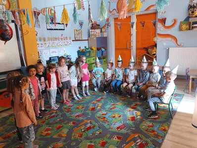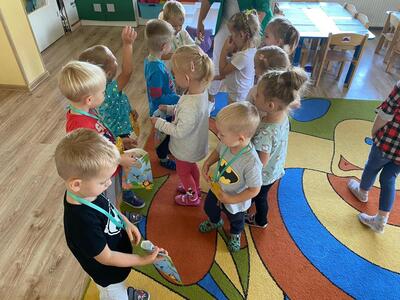 Dnia 29.09.2023r. w naszym przedszkolu uroczyście obchodziliśmy święto wszystkich chłopaków. W tym dniu dziewczynki i panie składały chłopcom życzenia i śpiewały„Sto lat”. Z okazji swojego święta wszyscy chłopcy otrzymali medale i upominki. Nie zabrakło także w tym dniu słodkiego poczęstunku dla wszystkich dzieci. Dzieci oglądały swoje ulubione bajki. Nie zabrakło tańców i wspólnych zabaw. Był to dzień pełen wrażeń i dobrej zabawy.