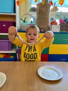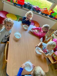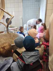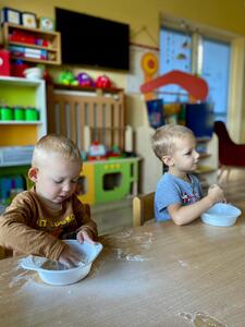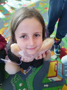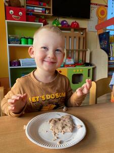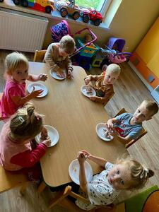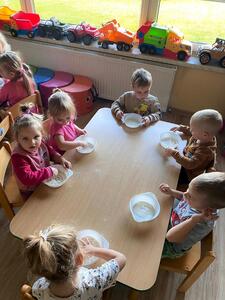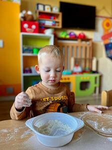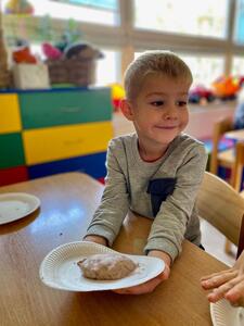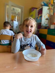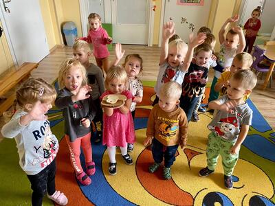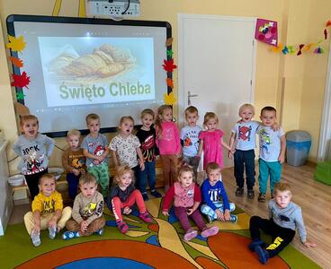 16 października najmłodsze przedszkolaki obchodziły Dzień Chleba. Podczas zajęć dowiedziały się w jaki sposób powstaje chleb słuchając historyjki obrazkowej „ Od ziarenka do bochenka”. Poznały również etapy produkcji chleba i innych wyrobów oglądając film edukacyjny. Dzieci uświadomiły sobie , że powstanie chleba jest wynikiem ciężkiej pracy wielu ludzi. Przedszkolaki sensorycznie poznały ziarna pszenicy, żyta i mąki. Na koniec z masy solnej wykonały rogale i bułki.
