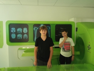 Tego dnia także uczniowie udali się do centrum edukacyjno-medycznego Edukatorium ,,Juliusz” w Rybniku. Jest to niezwykłe miejsce, stworzone ze starego kompleksu szpitalnego. Wystawa ,,Medycyna i Farmacja” przeniosła nas do wnętrza człowieka i poszerzyła wiedzę na ten temat. Przechodząc przez kolejne oddziały wystawy uczniowie mogli za pomocą stanowisk multimedialnych poznać ludzki organizm, jego anatomię i sposób funkcjonowania.