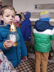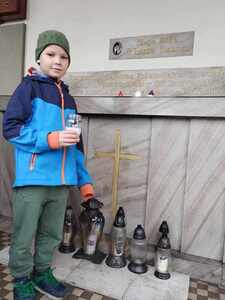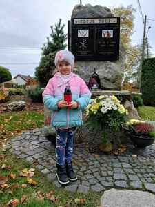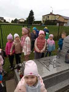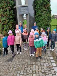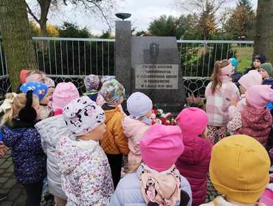 Zbliża się listopad - miesiąc pamięci o zmarłych i tych, którzy ginęli w walkach o wolność Polski. Wykorzystując piękną pogodę 30.10.23r. przedszkolaki odwiedziły cmentarz i miejsca pamięci w naszej miejscowości przy kościele i klasztorze Sióstr Salezjanek. Dzieci zapaliły znicze pod pomnikiem pamięci dzieci pomordowanych w obozie Polenlager 82, na cmentarzu ku pamięci ofiarom II Wojny Światowej z Pogrzebienia, Kornowaca oraz na grobie powstańca śląskiego Teodora Wilka. Pobyt na cmentarzu był przygotowaniem do przeżywania dni, podczas których wspominamy tych, którzy odeszli. To była ważna lekcja wychowania rodzinnego, patriotycznego, która pozostanie dzieciom w pamięci.