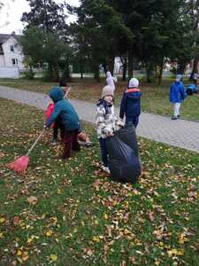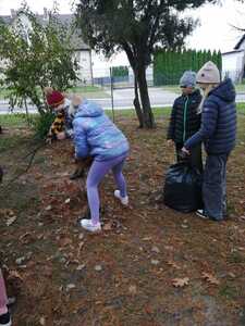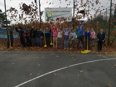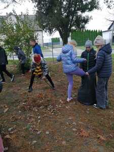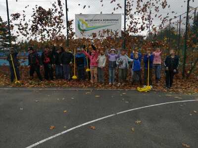 W ubiegły wtorek uczniowie naszej szkoły w ramach lekcji wychowania fizycznego chwycili za grabie, miotły i worki aby wyporządzić szkolne podwórko. Każdy uczeń zakasał rękawy i ruszał do pracy. Oczywiście sprzątaniu towarzyszyło wiele frajdy, bo nie ma to jak skoki do góry liści. Jak widać w naszej szkole można łączyć przyjemne z pożytecznym - uczeń się bawi, nauczyciel może dokładnie zobrazować przy jakich codziennych czynnościach trzeba wykonać skłon czy przysiad, a szkoła ma zadbane podwórko.