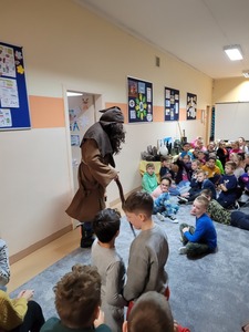 Na zakończenie spotkania dzieci odwiedził tajemniczy gość, duch kopalni Skarbnik, który przyniósł dzieciom słodką niespodziankę.