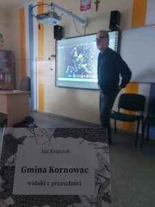 Na spotkaniu autor opowiedział o swojej najnowszej książce : Gmina Kornowac – widoki przeszłości. W książce zostały opisane dzieje miejscowości gminy Kornowac. Uczniowie m. in. Dowiedzieli się o najważniejszych rodzinach związanych z Pogrzebieniem m.in. rodzinie przedsiębiorcy Josepha Domsa, rodzinie Larischów, Eichendorfów oraz Baildonów. Autor zachęcił młodych czytelników do tego rodzaju literatury – bo dzięki niej mogą się dowiedzieć o sowich korzeniach i dziedzictwie. O historii swojej wsi, w której się wychowali. Autor w atrakcyjny sposób przybliżył młodzieży fakty historyczne i ciekawostki a uczniowie uważnie słuchali i chętnie zadawali pytania.