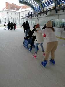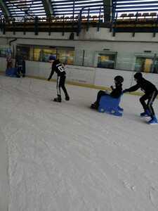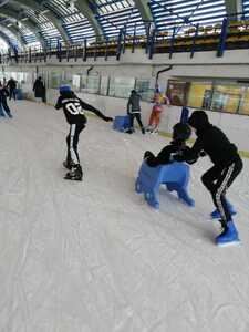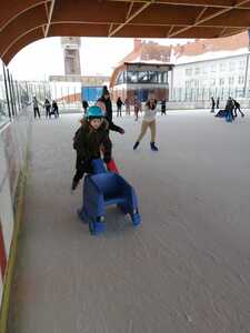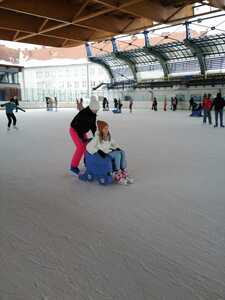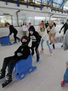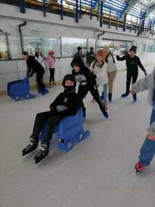 Samorząd Uczniowski zorganizował dla uczniów klas starszych naszej szkoły wyjazd na lodowisko do Pszowa. Jazda na łyżwach wzmacnia mięśnie nóg oraz mieśnie odpowiadające za równowagę ciała. Na tafli lodowiska nasi uczniowie wyśmienicie się bawili, a także pomagali sobie wzajemnie. Ci, którzy byli po raz pierwszy na tafli lodowiska, otrzymali wiele rad i propozycji pomocy. Postawa niektórych uczniów była godna pochwały. Zapraszamy do zobaczenia relacji z wyjazdu na łyżwy.