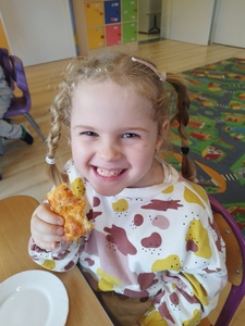 12 lutego we wszystkich grupach przedszkolnych obchodzony był „Międzynarodowy Dzień Pizzy”. Tego dnia sale naszego przedszkola zamieniły się w prawdziwe, włoskie pizzerie. Na zajęciach dzieci miały okazję zobaczyć jak powstaje ten kultowy włoski placek i jakich składników potrzeba, aby go przygotować. Poznały historię jego powstania oraz dowiedziały się, z którego kraju pochodzi. Wszystkim bardzo smakowała pizza wykonana przez dzieci. Nie zabrakło rónież papierowych "przysmaków".